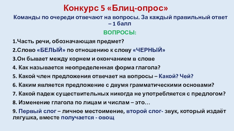 Слайд 9Конкурс 5 «Блиц-опрос»