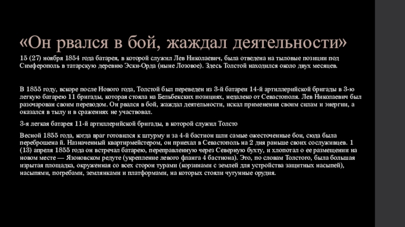 -Впереди себя на крутой горе видите какое-то черное, грязное пространство, изрытое канавами, и это-то впереди и есть 4-й бастион.