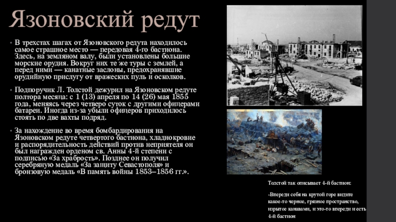 Толстой так описывает 4-й бастион: