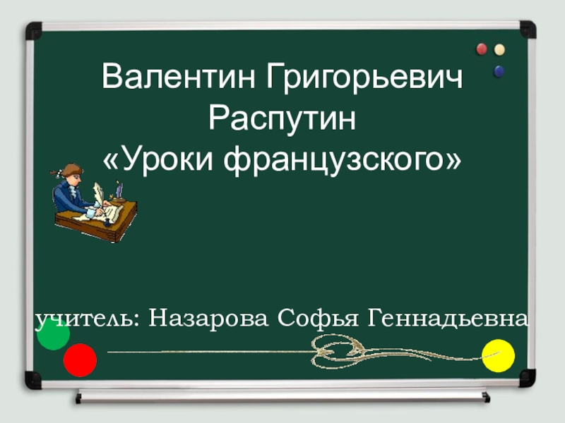 Слайд 1 Валентин Григорьевич Распутин «Уроки французского» учитель: Назарова Софья Геннадьевна