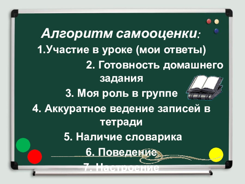 Алгоритм самооценки:1.Участие в уроке (мои ответы)           2.
