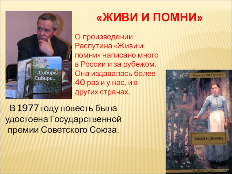 Слайд 5О произведении Распутина «Живи и помни» написано много в России и