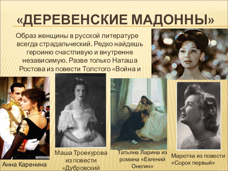 Образ женщины в русской литературе всегда страдальческий. Редко найдешь