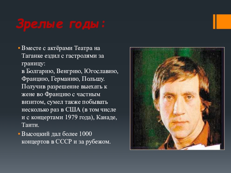 Высоцкий дал более 1000 концертов в СССР и за рубежом.