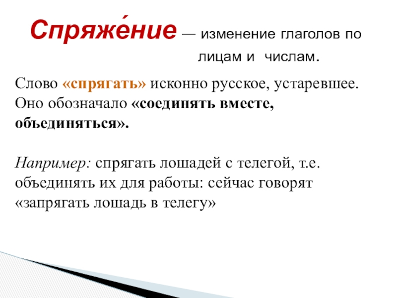 Слово «спрягать» исконно русское, устаревшее. Оно обозначало «соединять вместе, объединяться».