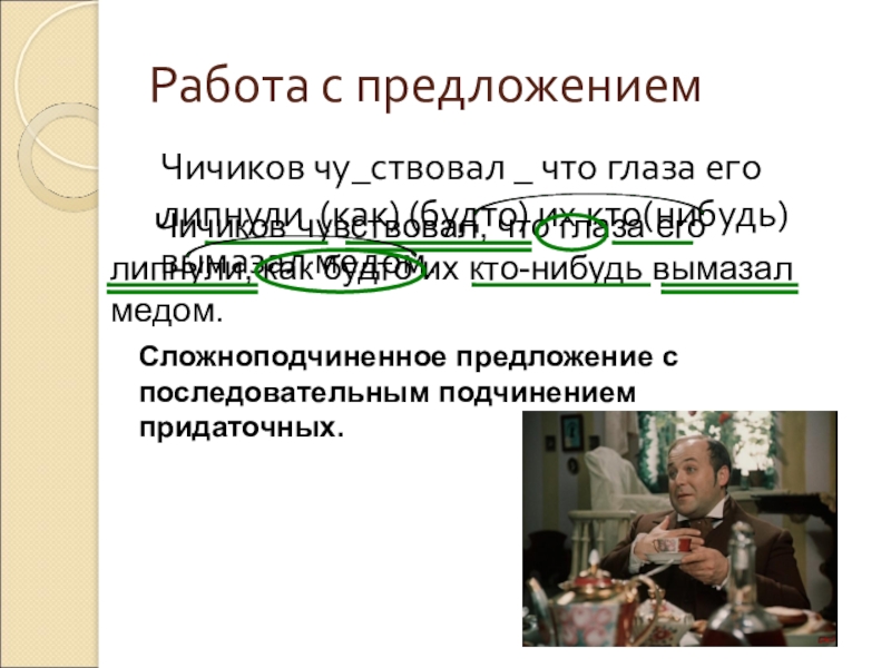 Сложноподчиненное предложение с последовательным подчинением придаточных.