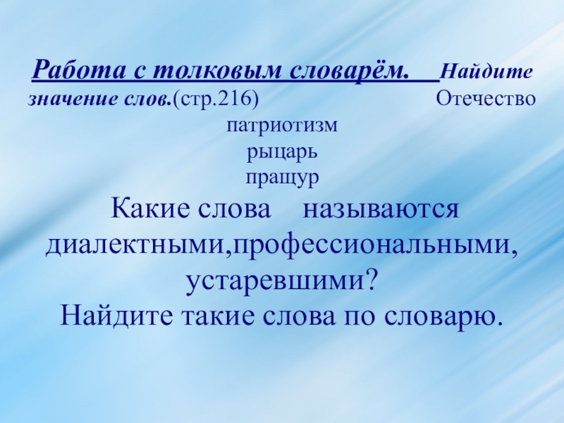 Лексическое значение слов можно посмотреть в толковых словарях.