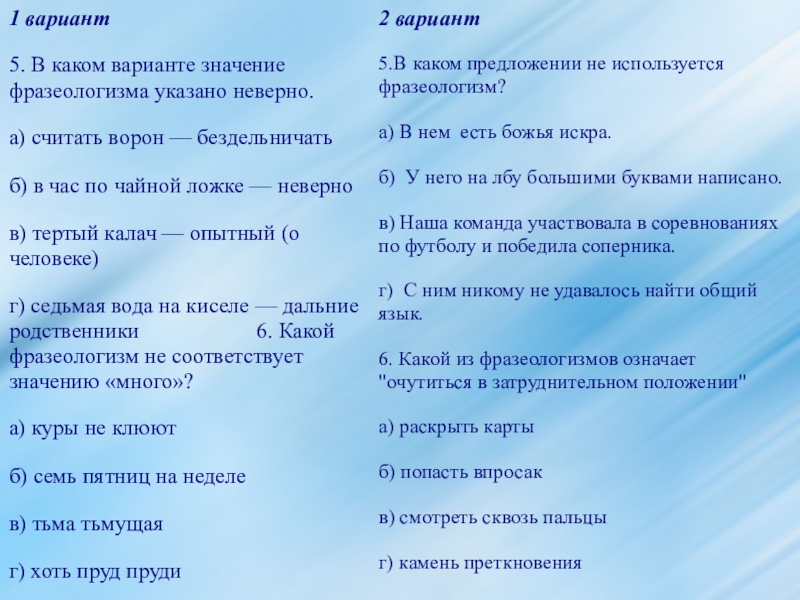 5.В каком предложении не используется фразеологизм?