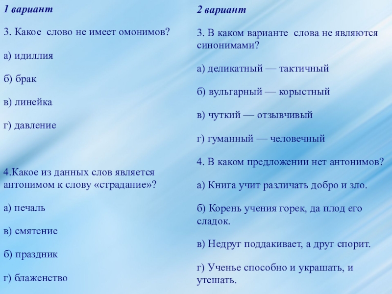 3. В каком варианте слова не являются синонимами?