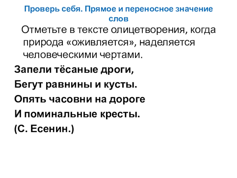 Слайд 21Проверь себя. Прямое и переносное значение слов