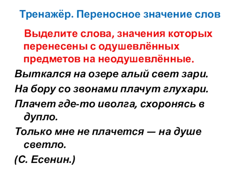 Слайд 12Тренажёр. Прямое и переносное значение слов