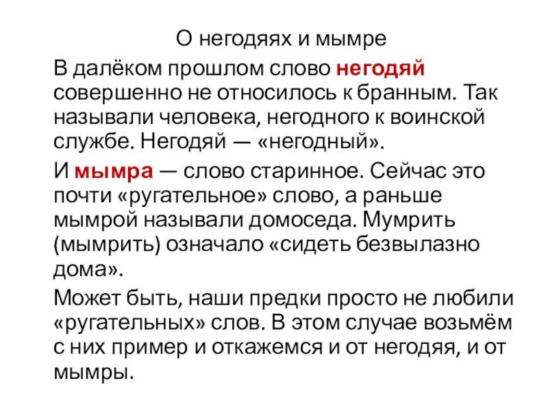 Может быть, наши предки просто не любили «ругательных» слов. В этом случае возьмём с них пример и откажемся и от негодяя, и от мымры.