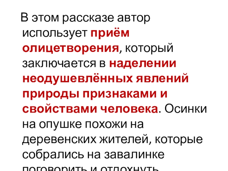 Слайд 16 В этом рассказе автор использует приём олицетворения, который заключается