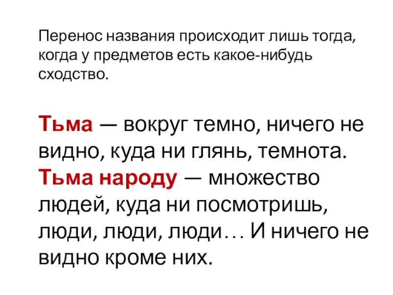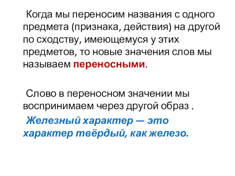 действия) на другой по сходству, имеющемуся у этих предметов, то новые значения слов мы называем переносными.