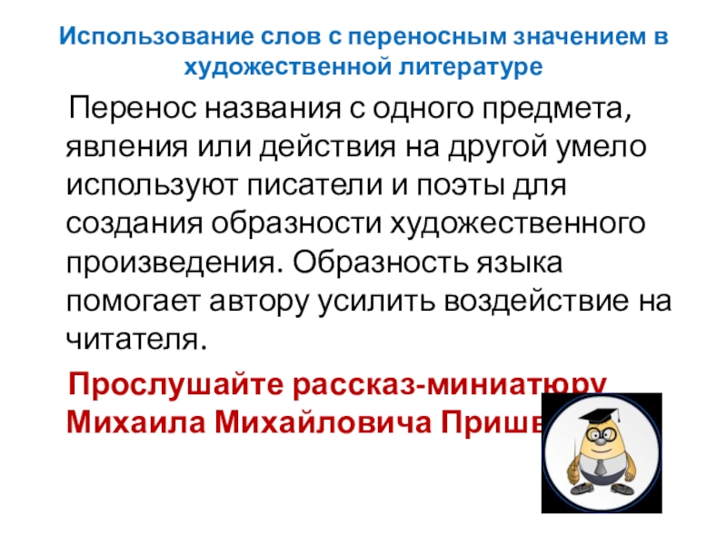 Слайд 18 Слова, употреблённые в переносном значении, приобретают иной смысл, становятся
