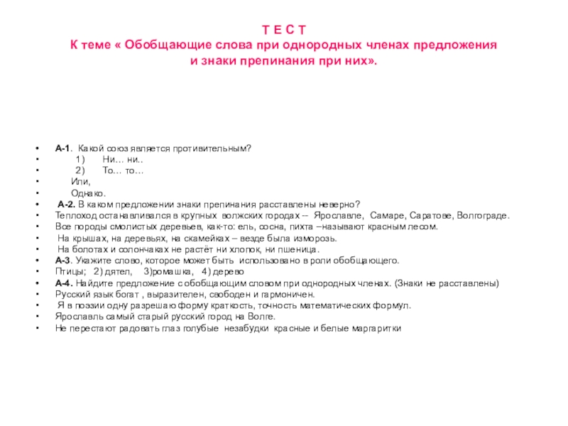 А-1. Какой союз является противительным?