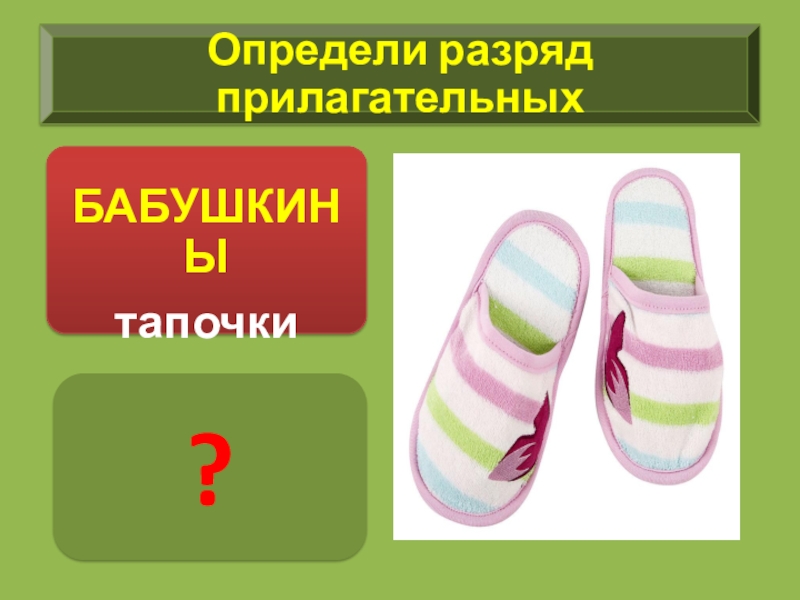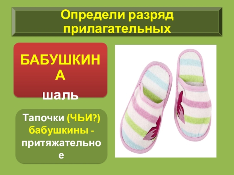 Слайд 31Тапочки (ЧЬИ?) бабушкины - притяжательное