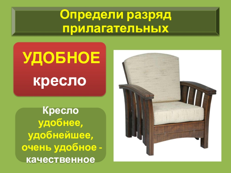 Слайд 29Кресло удобнее, удобнейшее, очень удобное - качественное