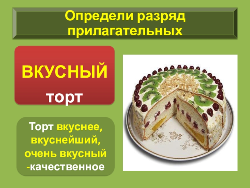 Слайд 25Торт вкуснее, вкуснейший, очень вкусный -качественное