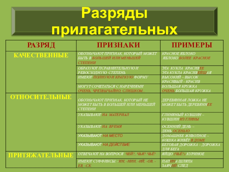 РАЗРЯДЫ ПРИЛАГАТЕЛЬНЫХ ПО ЗНАЧЕНИЮ