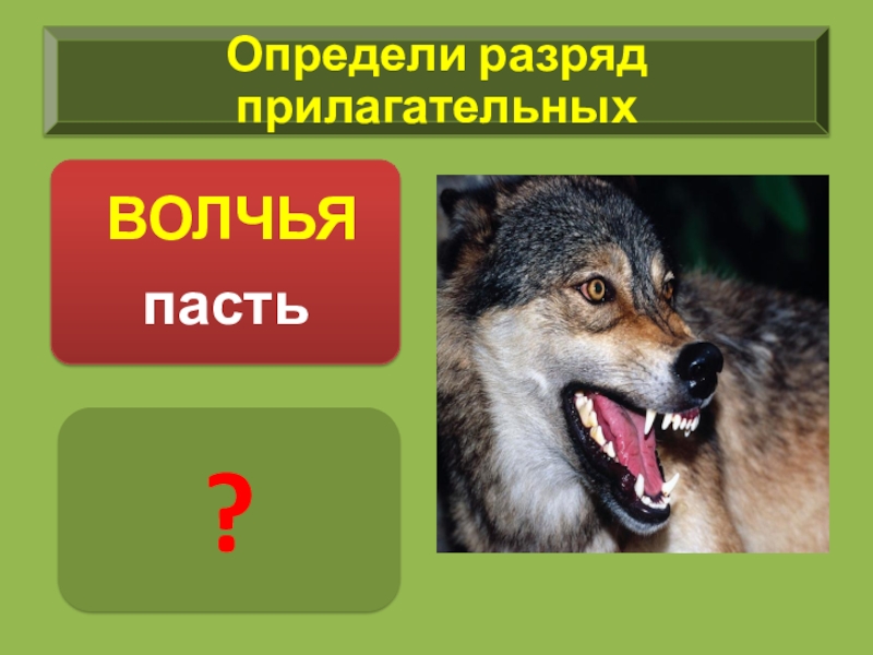 Слайд 27Пасть (ЧЬЯ?) волчья - притяжательное