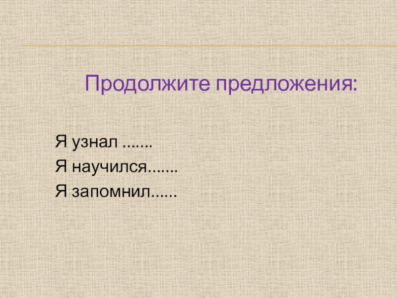 Продолжите предложения:Я узнал …….Я научился…….Я запомнил……