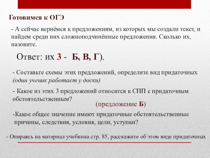 - Опираясь на материал учебника стр. 85, расскажите об этом виде придаточных