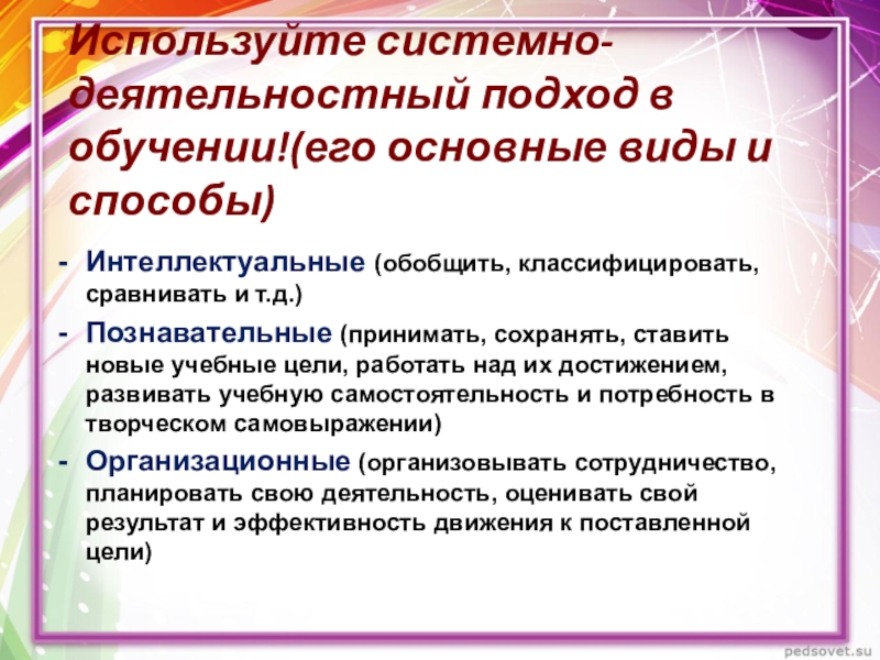 Интеллектуальные (обобщить, классифицировать, сравнивать и т.д.)