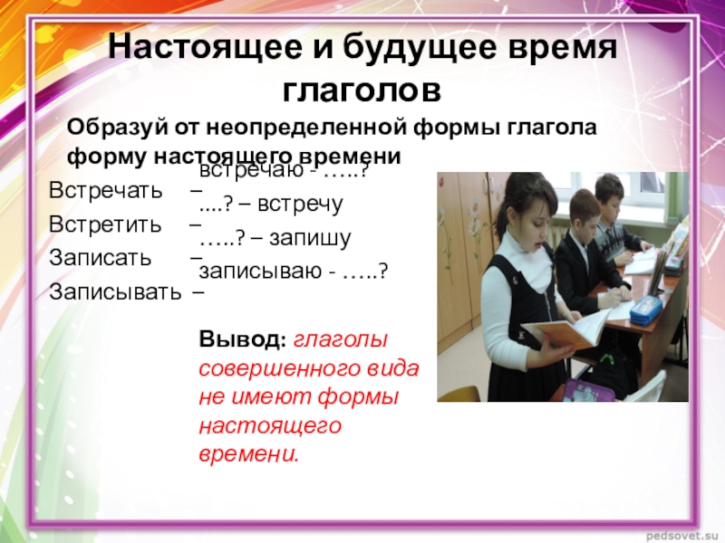 Вывод: глаголы совершенного вида не имеют формы настоящего времени.