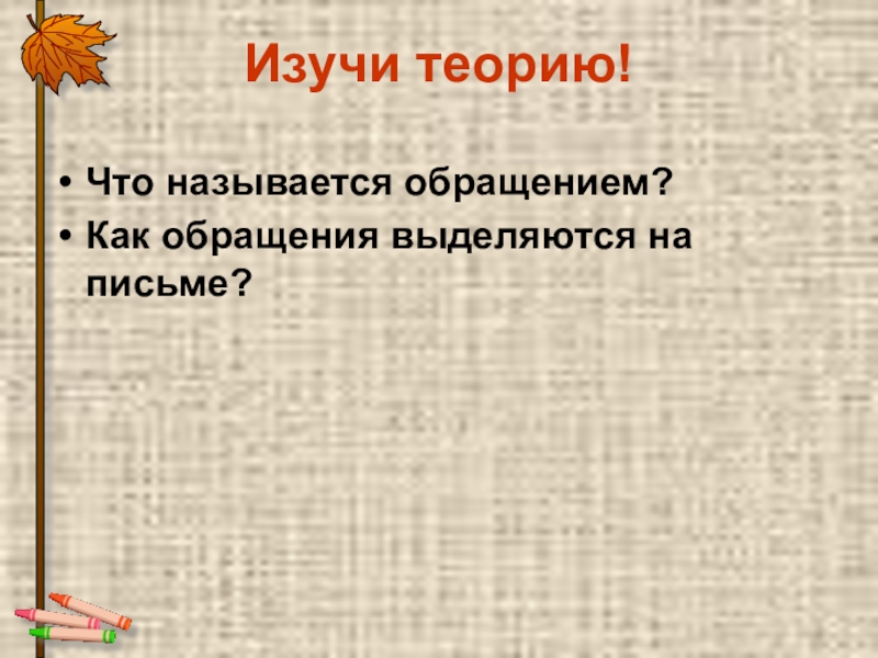Изучи теорию!Что называется обращением?Как обращения выделяются на письме?