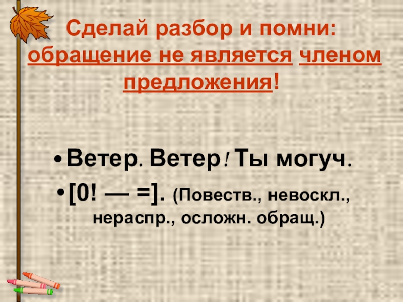 Слайд 15Сделай разбор и помни: обращение не является членом предложения!