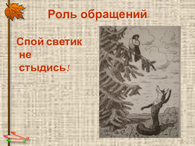 Роль обращений Спой светик не      стыдись!