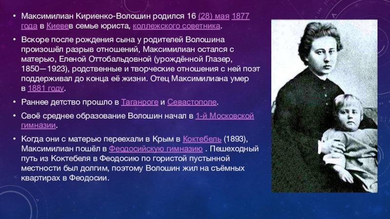Слайд 5Максимилиан Кириенко-Волошин родился 16 (28) мая 1877 года в Киевев семье юриста, коллежского советника.