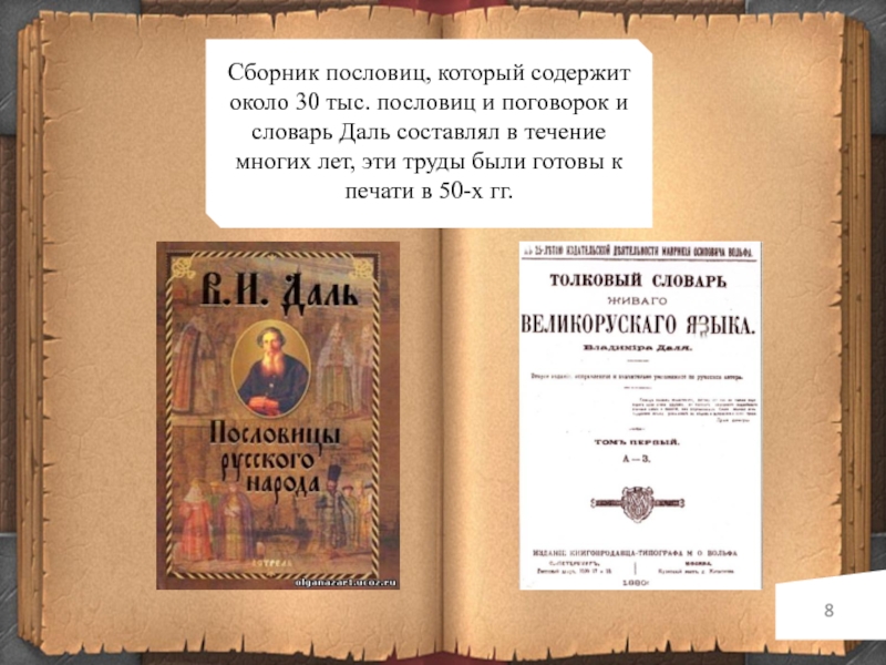 словарь Даль составлял в течение многих лет, эти труды были готовы к печати в 50-х гг.