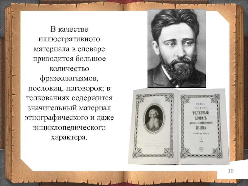 пор единственный словарь русского языка, охватывающий как литературный язык, так и различные диалекты. Из 200 000 слов, включенных в словарь, более половины составляет литературная лексика, а более 80 000 слов, в основном диалектных, были записаны Далем в различных районах России.