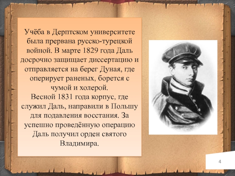 года Даль досрочно защищает диссертацию и отправляется на берег Дуная, где оперирует раненых, борется с чумой и холерой.