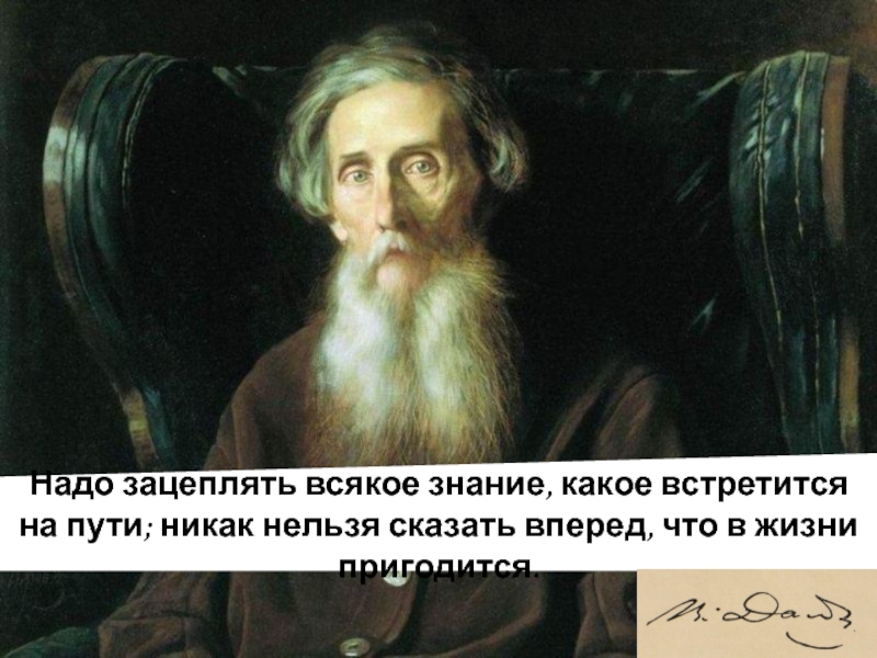 Слайд 12Надо зацеплять всякое знание, какое встретится на пути; никак нельзя сказать