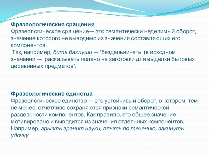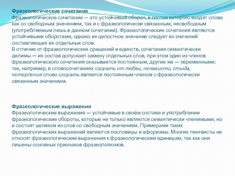 Слайд 3Фразеологи́зм (фразеологи́ческий оборо́т, фразе́ма) — это устойчивое сочетание слов, свойственное только данному языку, значение
