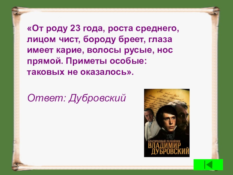 Ответ: Дубровский
