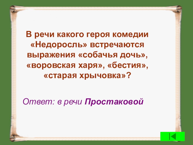 Ответ: в речи Простаковой