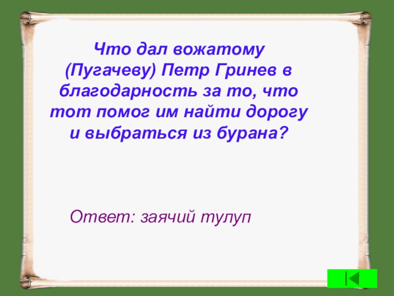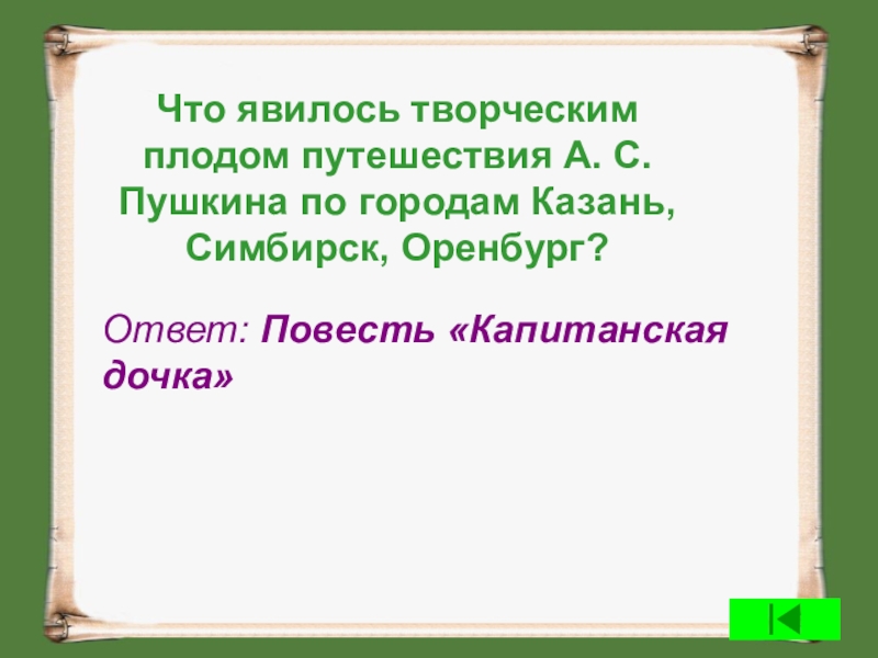 Ответ: Повесть «Капитанская дочка»