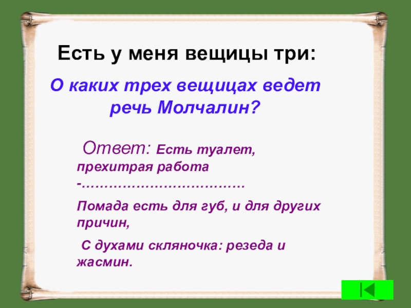 Ответ: Есть туалет, прехитрая работа -………………………………