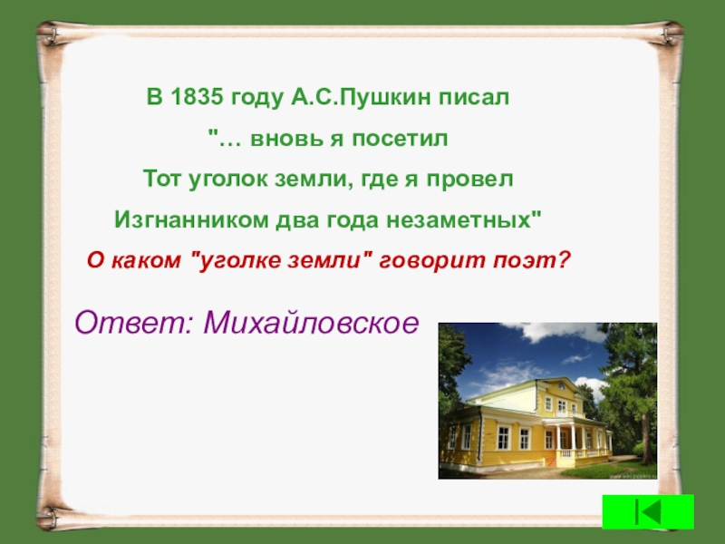 Ответ: Михайловское