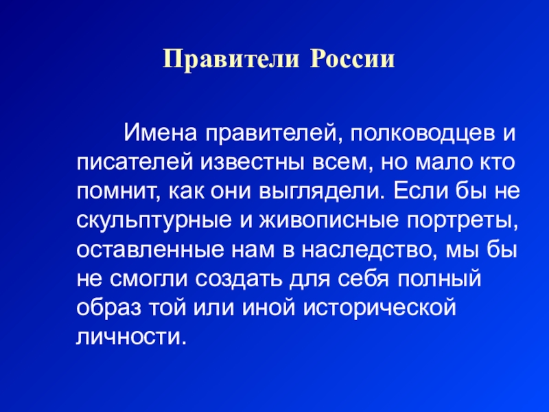 известны всем, но мало кто помнит, как они выглядели. Если бы не скульптурные и живописные портреты, оставленные нам в наследство, мы бы не смогли создать для себя полный образ той или иной исторической личности.