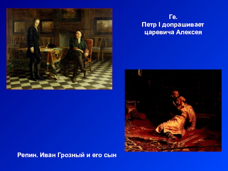 Ге.Петр I допрашивает царевича АлексеяРепин. Иван Грозный и его сын