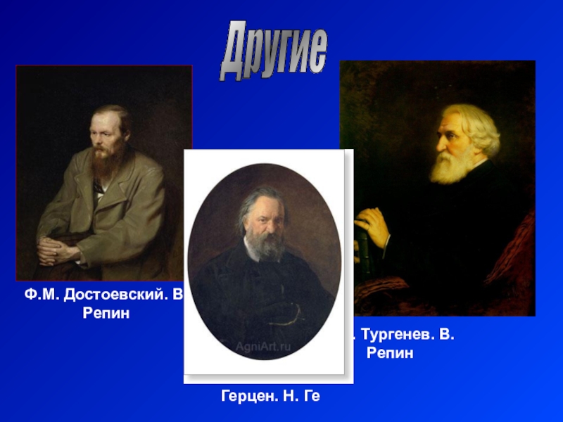 Ф.М. Достоевский. В. РепинИ.С. Тургенев. В. РепинГерцен. Н. ГеДругие