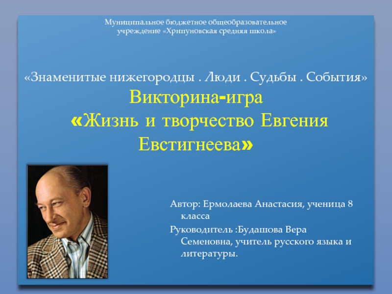 Руководитель :Будашова Вера Семеновна, учитель русского языка и литературы.