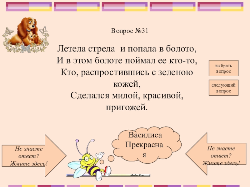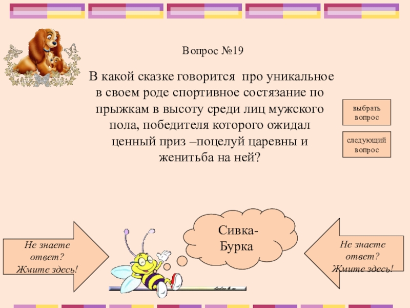 сказке говорится про уникальное в своем роде спортивное состязание по прыжкам в высоту среди лиц мужского пола, победителя которого ожидал ценный приз –поцелуй царевны и женитьба на ней?