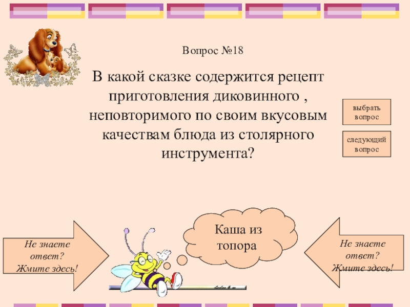 сказке содержится рецепт приготовления диковинного , неповторимого по своим вкусовым качествам блюда из столярного инструмента?