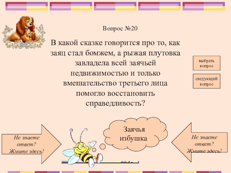 сказке говорится про то, как заяц стал бомжем, а рыжая плутовка завладела всей заячьей недвижимостью и только вмешательство третьего лица помогло восстановить справедливость?